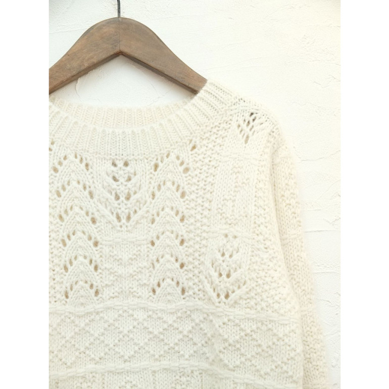 オフホワイトのお色が可愛い JCREWのケーブルニットです。
