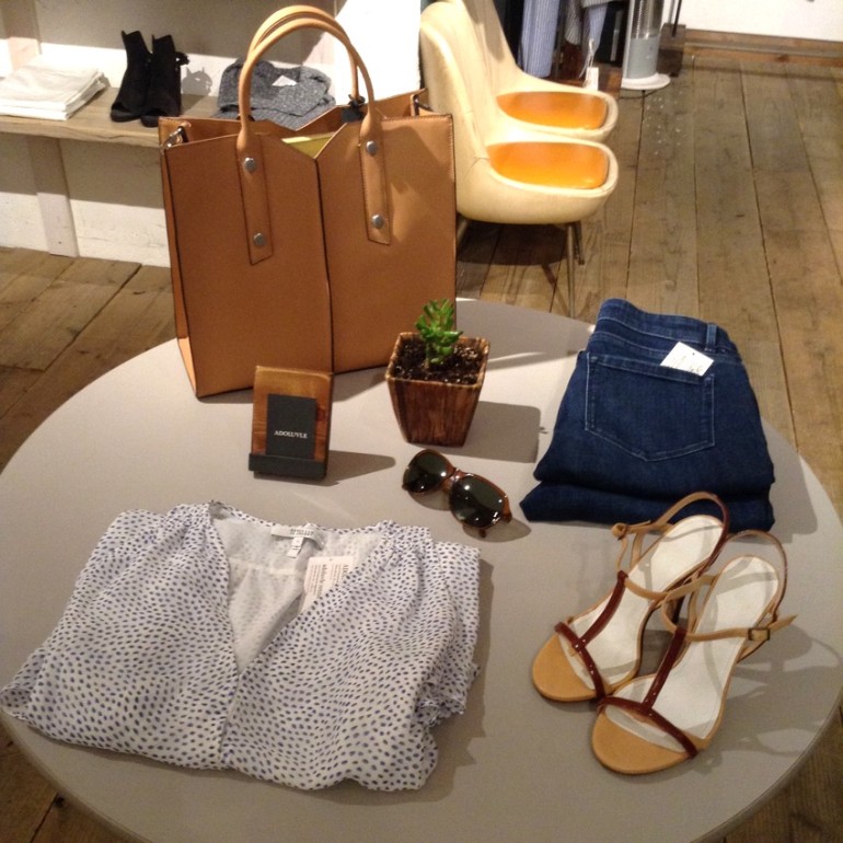 上品なキャメルのボディのVの切り込みの所から、チラリとのぞくイエロー。