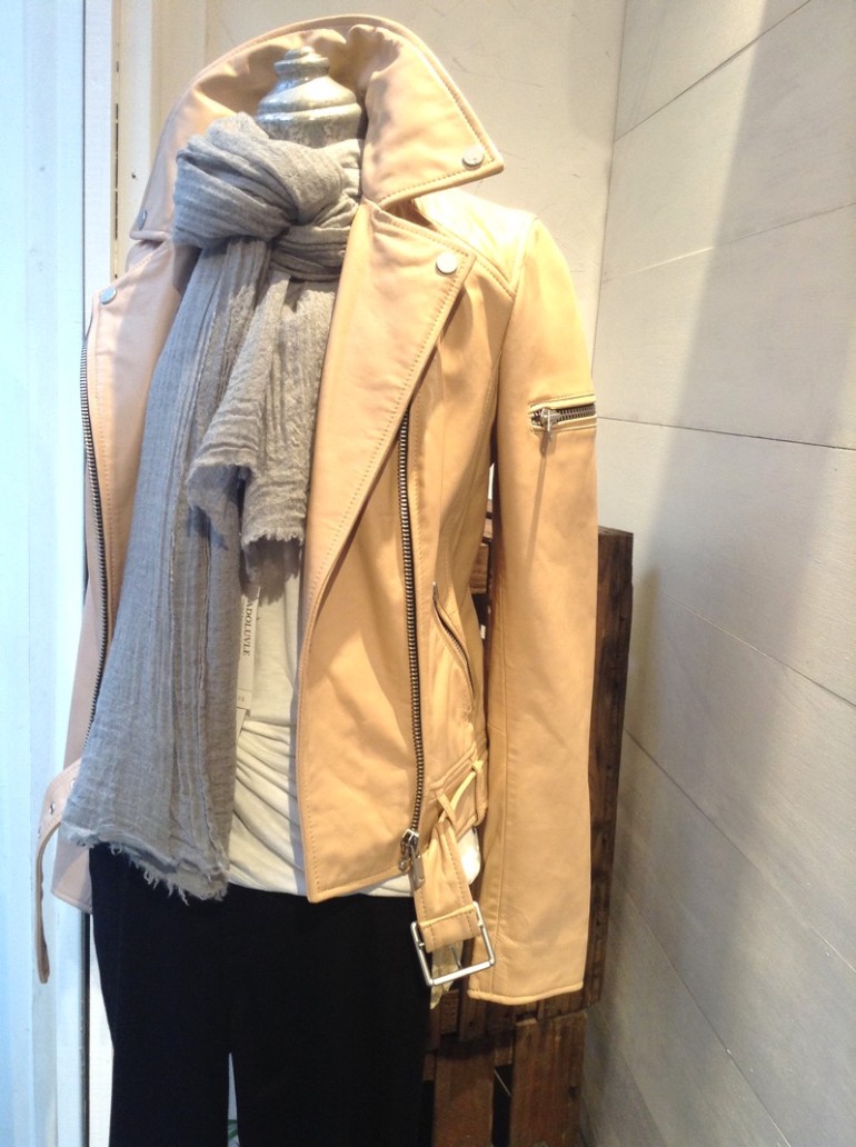 レザーのライダースジャケット。