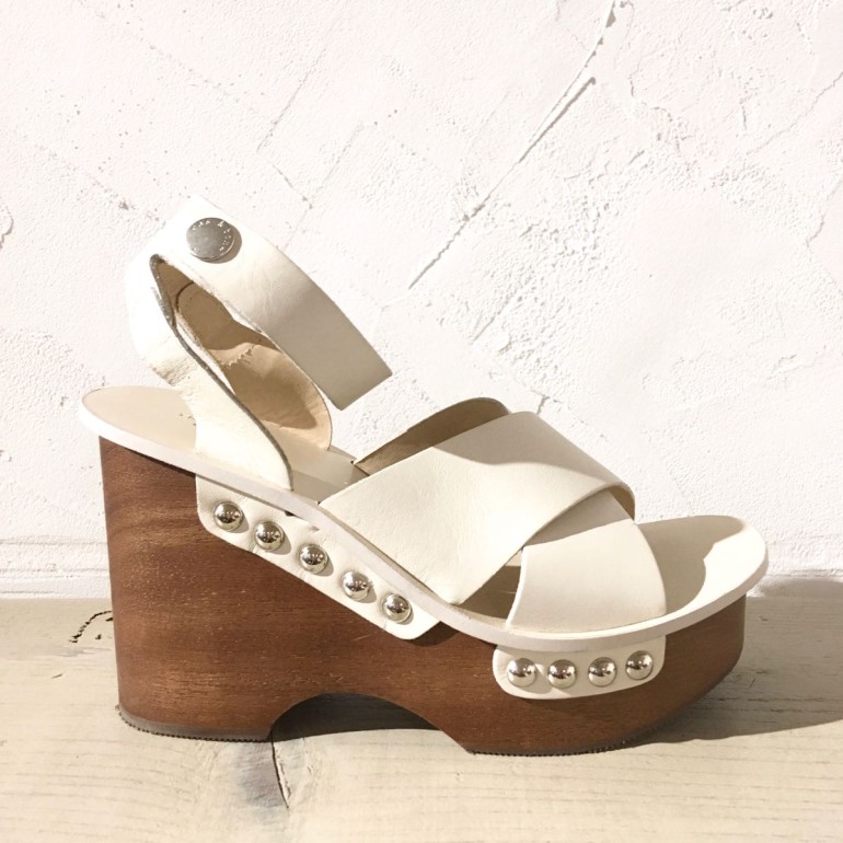 オフホワイト×ブラウンとやさしい印象のお色を使用しながらも、サイドにスタッズが打ち込まれているところがラグアンドボーンらしいなと感じさせてくれるサンダル。
