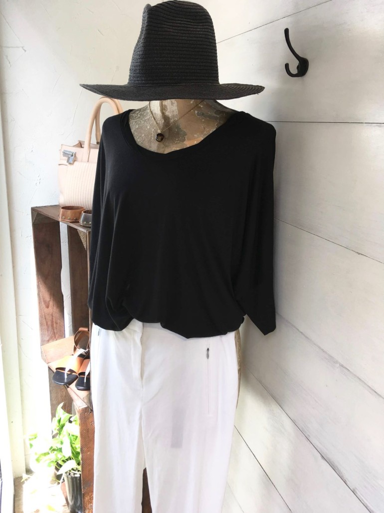 写真はパンツに少しINしていますが、スカートに合わせても、細めのパンツと合わせても良さそうです。