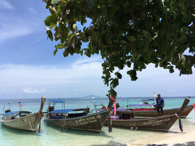 写真はお休み中に乗ったロングテールボートと海。
