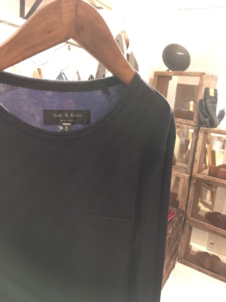 rag&boneから入荷したこちらのカットソーに使われている生地は表はネイビーですが裏がパープル。 マーセリゼーションコットン100%使用しておりますので、シルクのような光沢のあるカットソーです。 袖とラウンドした裾は切りっぱなしになっており、袖はまくってパープルを見せるのもオススメ! |