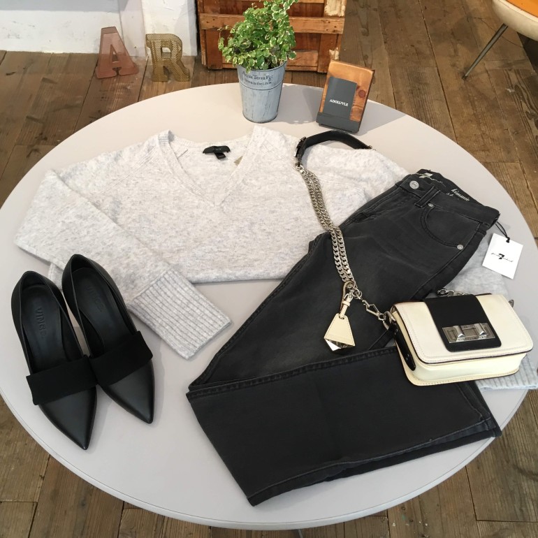 おとといご紹介した7 for all mankindのパンツとVince.のパンプスと合わせてみました。(バッグはレベッカミンコフ!)
