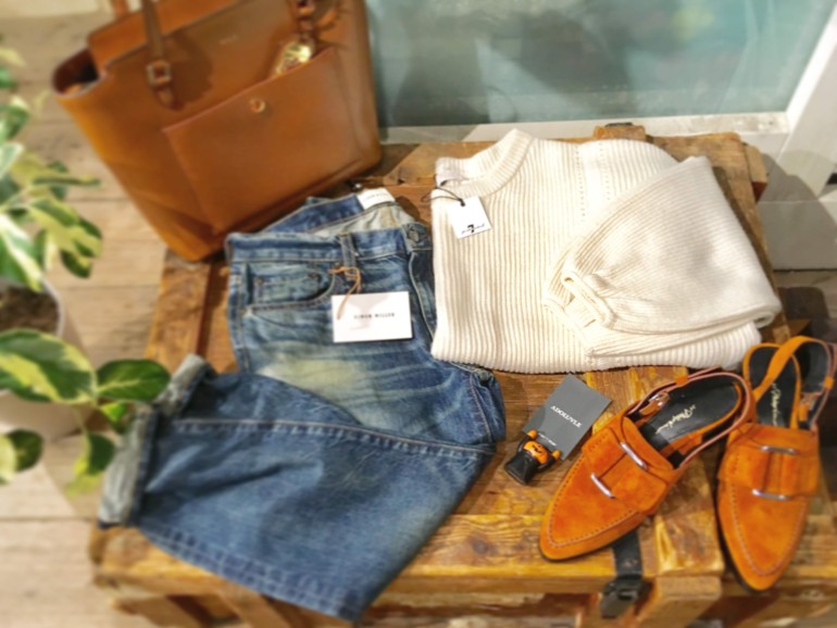 合わせるアイテムによって雰囲気を変えられる控えめキャラのオフホワイトですが、さりげない切り替えは目を惹きます。