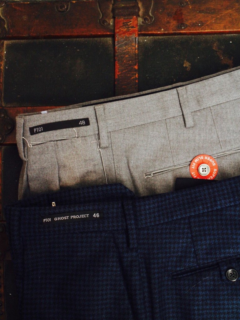 こちらは「PT01 GHOST PROJECT」のもので、「既存のPTの世界観にとらわれず、現在トレンドのパンツをPTが作ったらどんなパンツになるだろう?」というPTのプロジェクト。