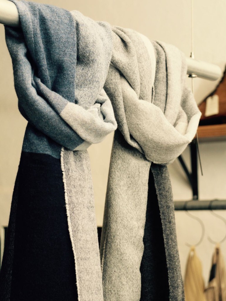 今回ご紹介するのは大きなチェックが特徴の「織り」のマフラーです。
