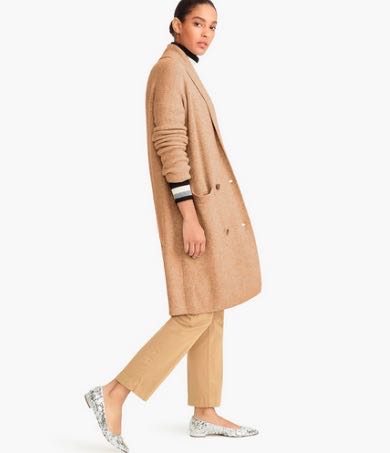こちらを使用したダブルカーディガンコートが入荷しました。