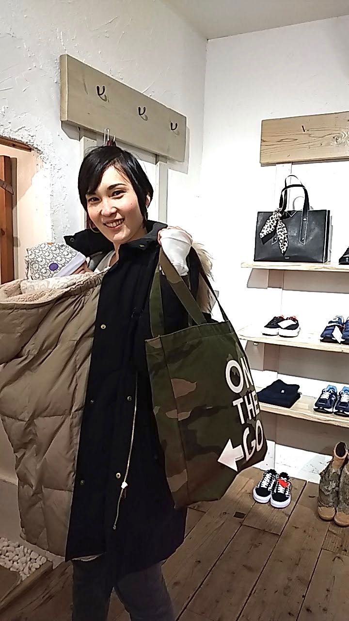 この中にご購入頂いたゴツゴツのウールコートとカットソーを入れて帰ったんです。