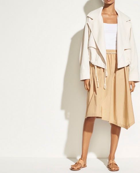 コットン100%のアシンメトリーなロープスカートが入荷しました。 Vince.らしいパリッとハリのあるお素材です。 ホワイトのロープが目を惹きますよね。