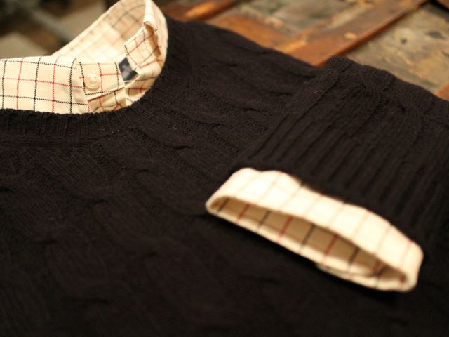 トラディショナルな雰囲気になるケーブルニットを、カラーをブラックにする事により
