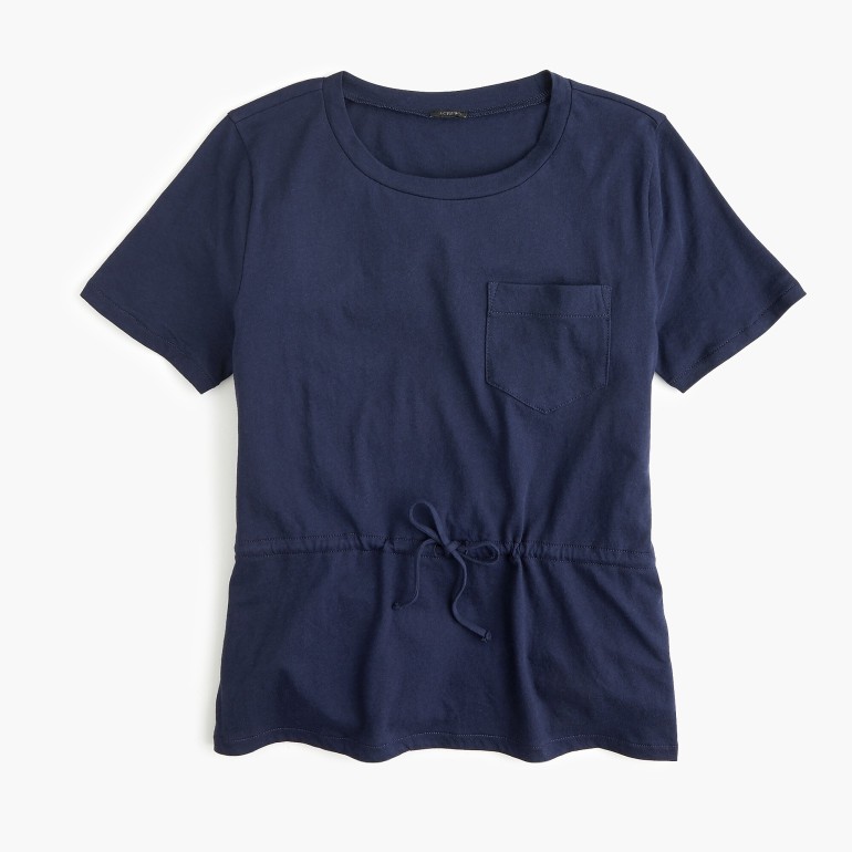 使いやすいコットン素材のクルーネックTeeで左胸にポケットもついているウエストタイTシャツです。