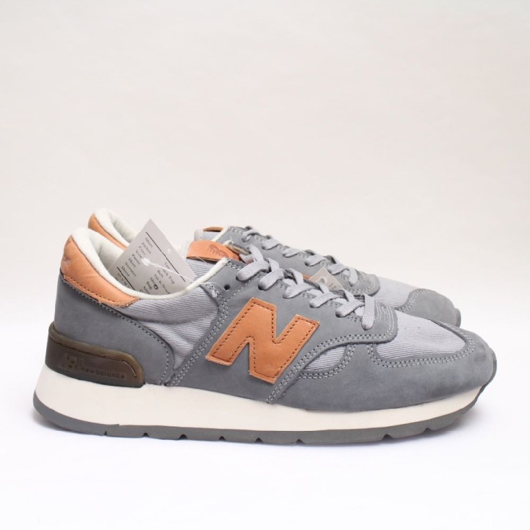 やや厚みのあるボディが特長の M990 をグレーの上質なピッグスキンスエードと同色メッシュ x タンレザーアクセントで仕上げたオーソドックスな一足。