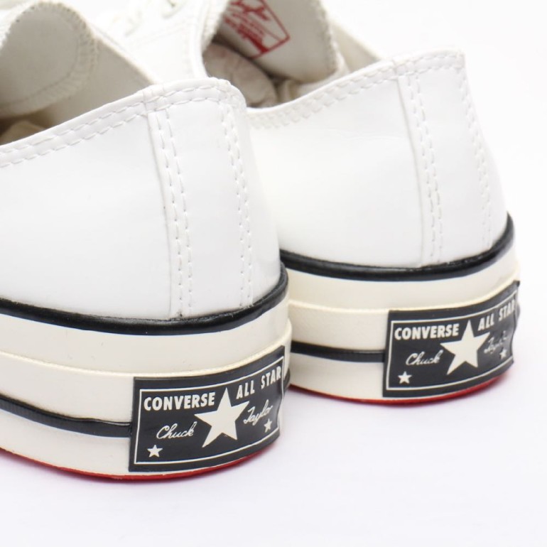 まずコンバースのスニーカーでエナメルというのは珍しく、しかも三ツ星、黒タグのCT70。