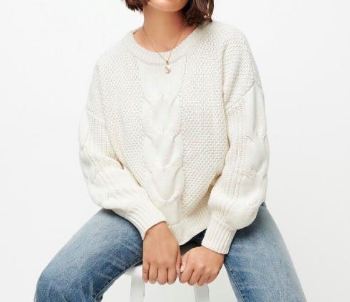 かわいいニットが入荷しました! 人気のアイボリーカラーで作られたケーブル編みニットです。