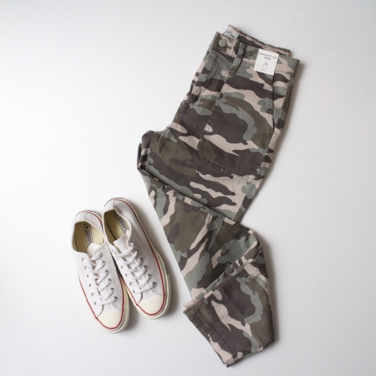 さて、私からご紹介するのはj.crewのカモフラージュ柄ベイカーパンツ。