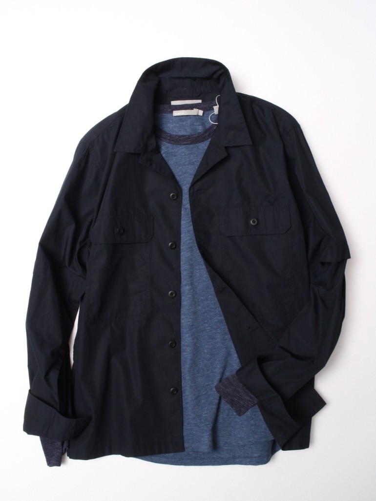 ダークネイビーのシャツジャケットはビンテージのUS ARMYユーティリティーシャツのような