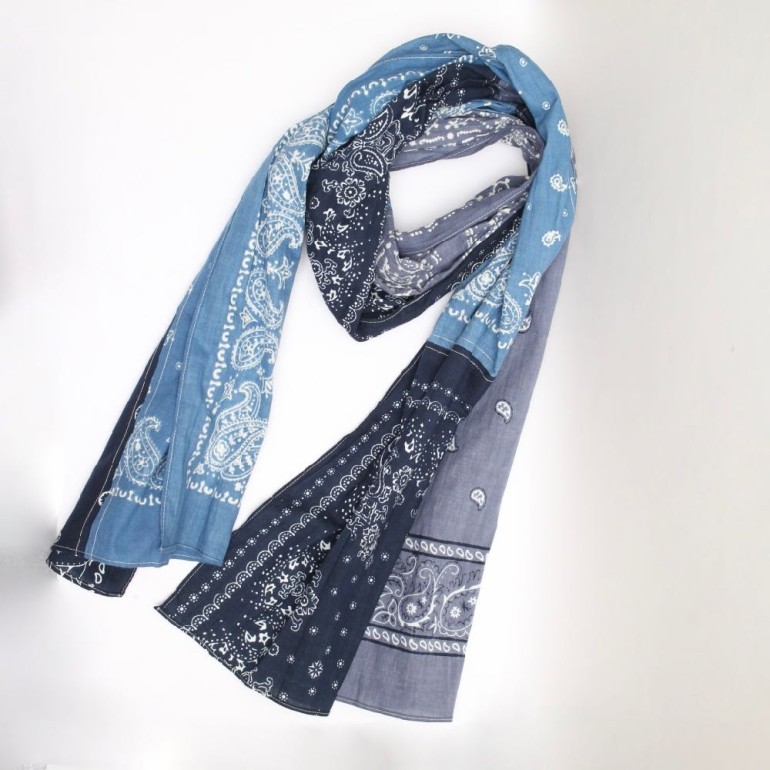 同系色の色の違うバンダナを繋ぎ合わせたようなストールが入荷! ビンテージ感を感じさせてくれる配色ですが、コーディネートに取り入れてみるととってもオシャレなポイントになるんです!!