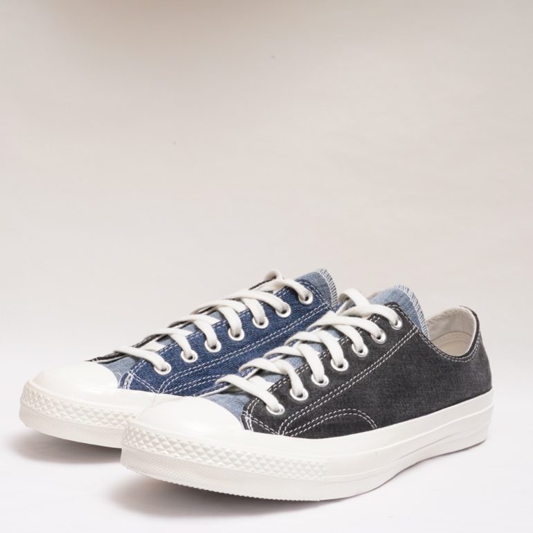 3色のリサイクルデニムをそれぞれのパーツに見合わせたクレイジーパターン。