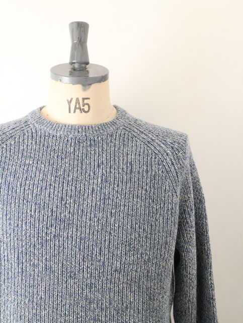 これから春まで使える 俗に言う梅春用の新作が入荷です。 ブルーとホワイトのトップの糸で編まれた ローゲージニット。