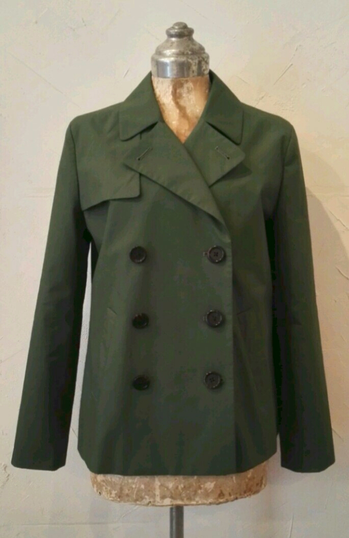 深みのあるグリーンが目を惹くスプリングコートですよね。
