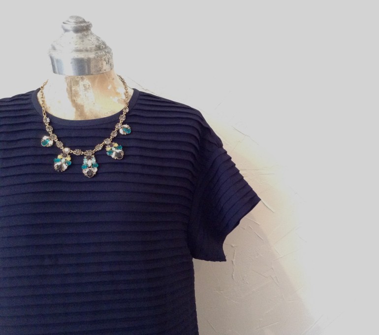 無地のネイビーですが、横のプリーツでボーダーのようなデザインになっています!