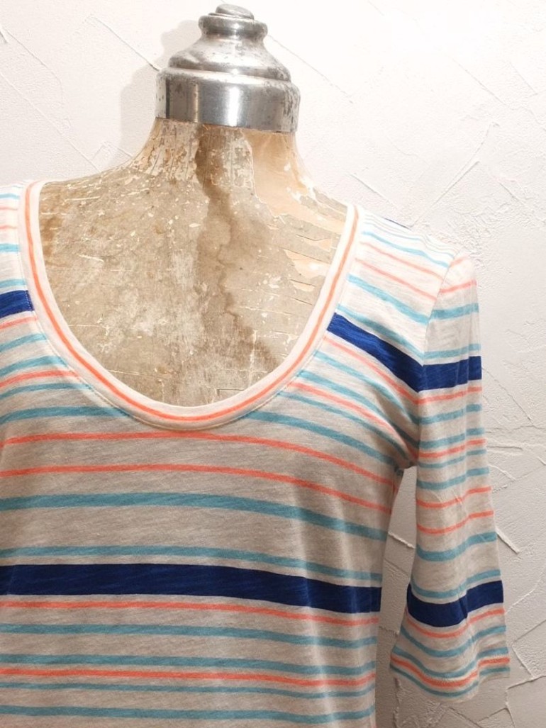 ホワイトベースに、サックス&ネイビー&オレンジのボーダーがとても爽やか!