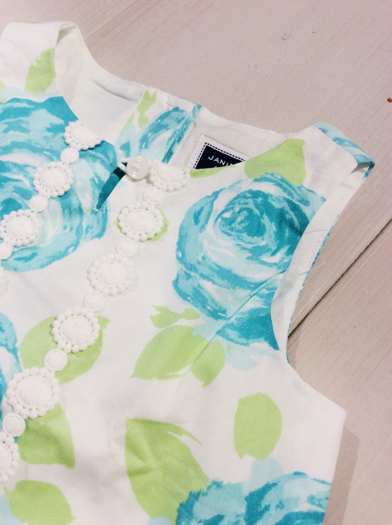 涼し気な色使い、ハイウエスト切り返しの大人ワンピースのようなシルエット…どこを取っても、可愛いデザインです。