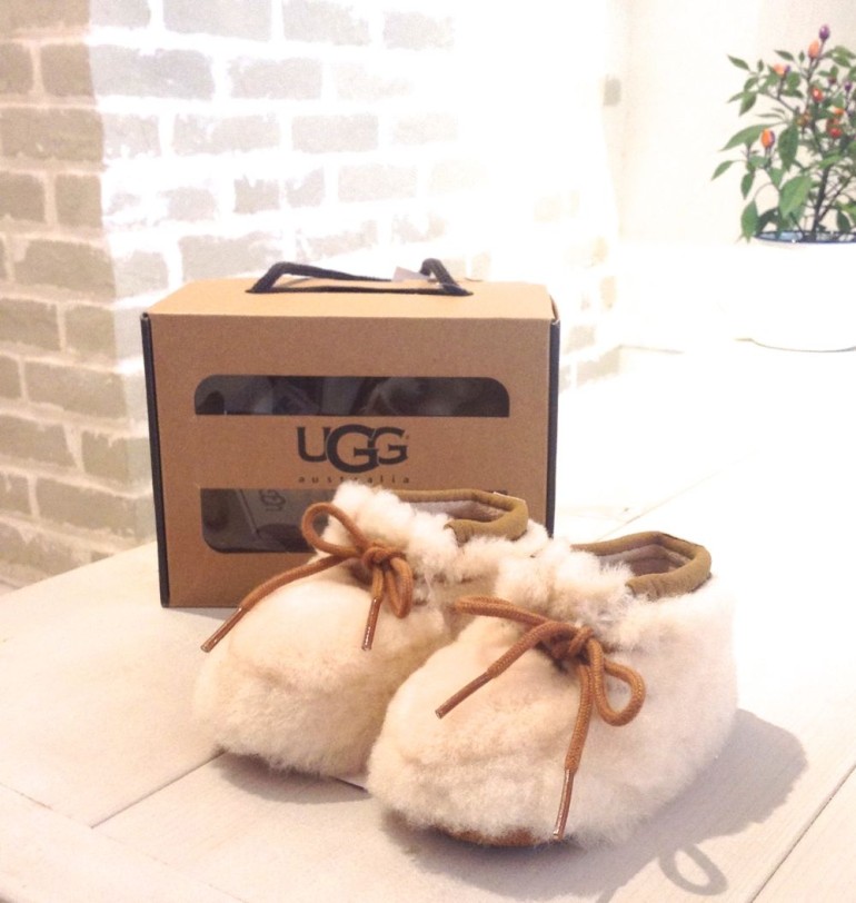 先日も帽子とマフラーのセットをご紹介しましたが、ムートンブーツで有名なUGGより今回はベビー用ムートンシューズが入荷しました。