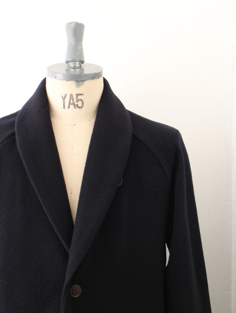 ボタン位置、(今期物は)ポケット形状などgoroutaらしい変化をつけた型に、希少なタスマニア島・メリノ羊毛とカシミヤを合わせたニット素材にて作った肌触りの良いラグランのガウンコート。