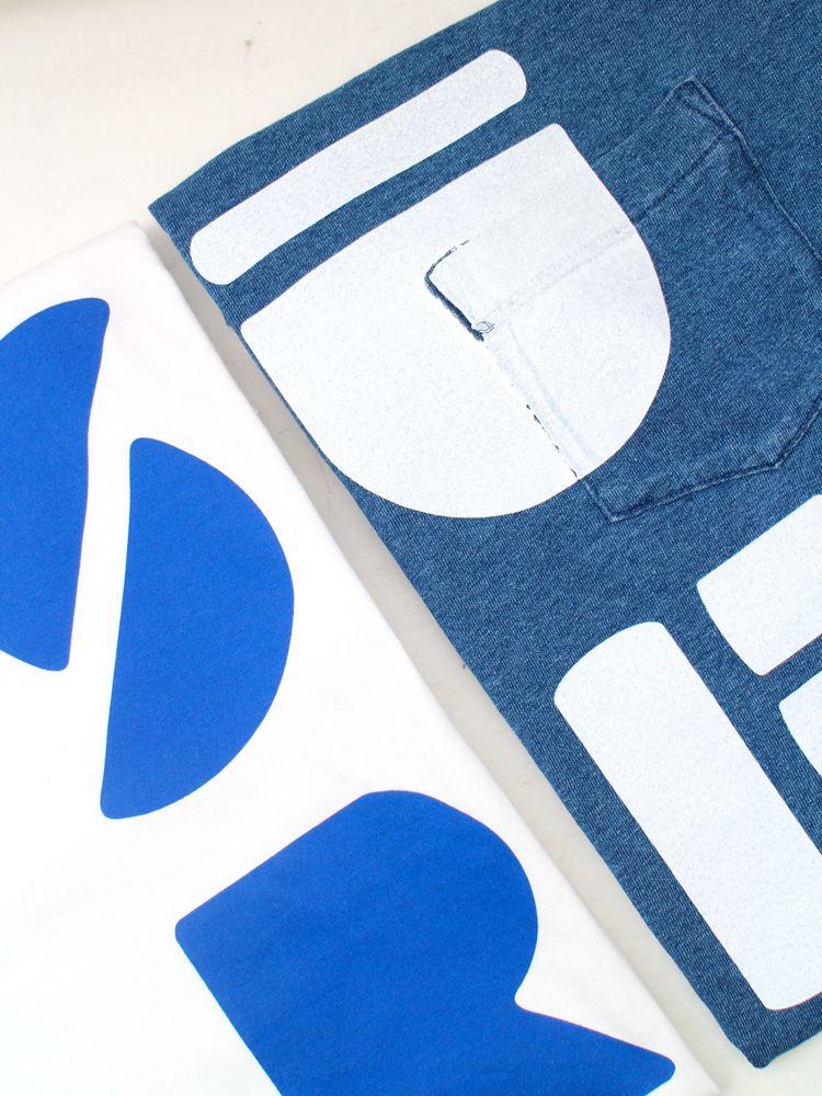 ノッペリした絵文字のような文字をあえてポケットTの上にプリントする事で立体感をプラス。