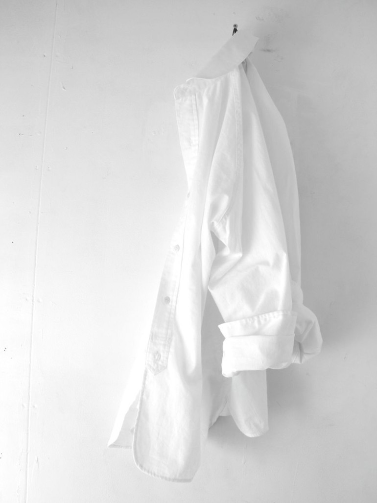 ワークシャツとは遠い存在にしたかったので、あえて胸ポケットを省略して上品に。