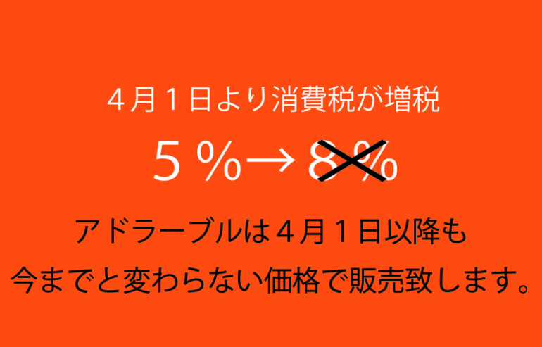 ですが、 アドラーブル&アドラーブルレトリストは以前にも告知しました通り、 しばらくの間、一部商品を除き増税致しません!