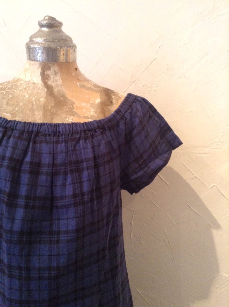 ブルーとネイビーのチェックで落ち着いた印象のワンピース。