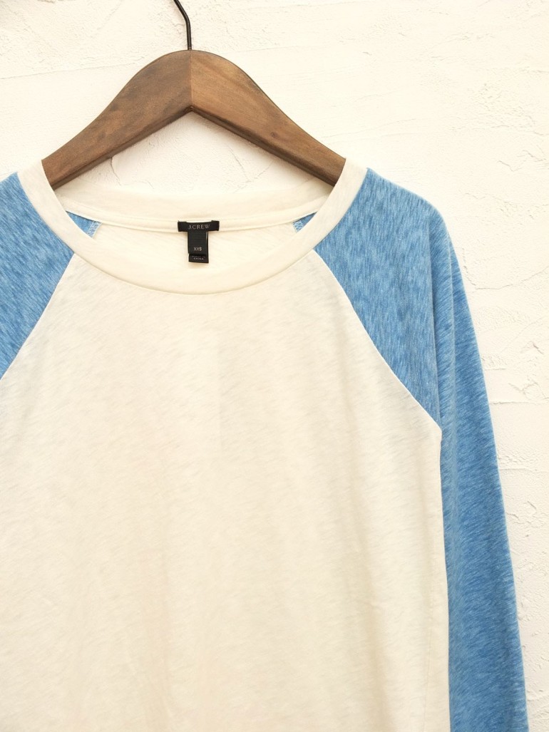 キレイなサックスブルーが目を惹く ラグランカットソー。
