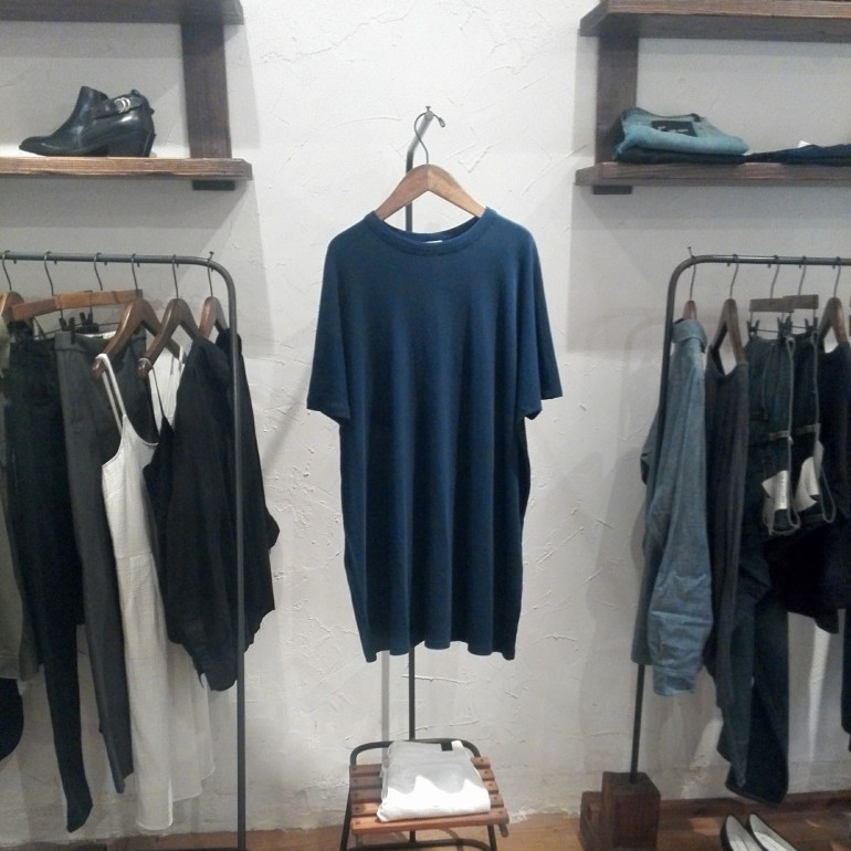 お色はネイビーのみ。しっとりとやわらかいコットン100%なのもうれしいですね。 ¥12500+tax |