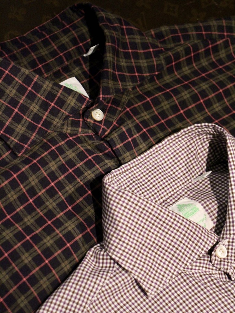 襟芯も柔らかで、どちらもカジュアルな印象のシャツ。ニットタイとかしてもカッコ良さそう!
