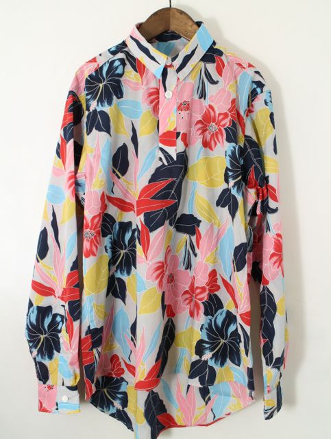 夏シャツが登場です。 ポリエステルスパローンのgoroutaオリジナル花柄プリントのシャツです。