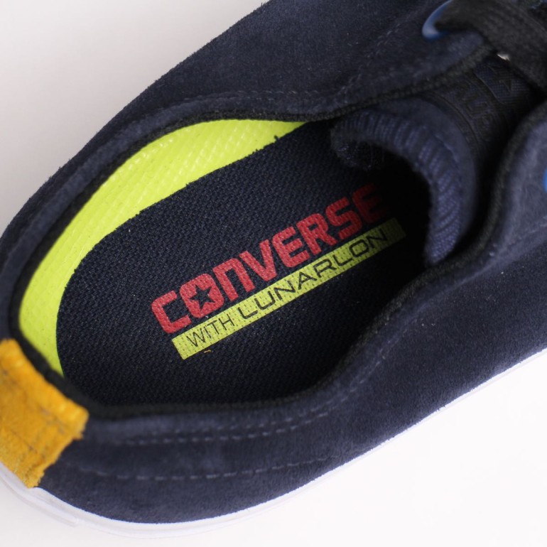 コンバースCTASをベースにデッキテープとの相性抜群なスウェードアッパーに別カラーのヒール補強を加えたスケートモデル「CTAS PRO OX」。